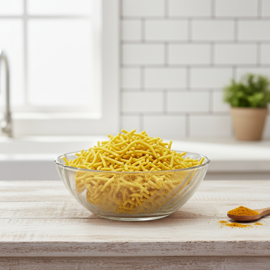 Crispy aur tasty Sev, premium besan aur selected masalon se tayaar ki gayi hai. Har bite me perfect crunch aur desi flavour milta hai, jo shaak, chaat ya direct munching ke liye ideal hai.